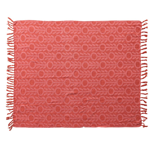 Woven Throw with Floral Pattern + Fringe