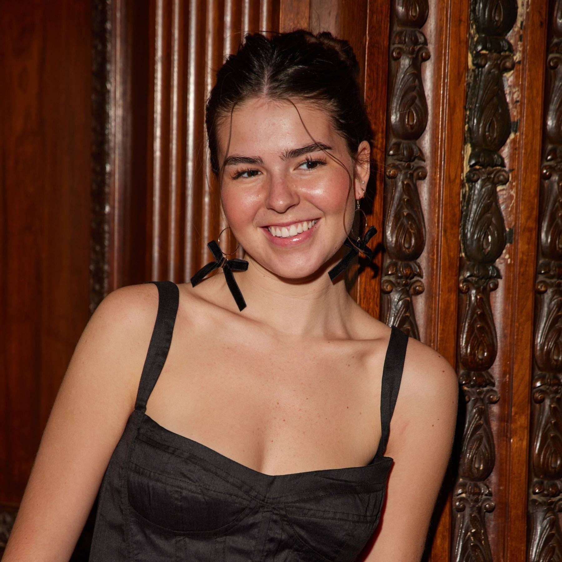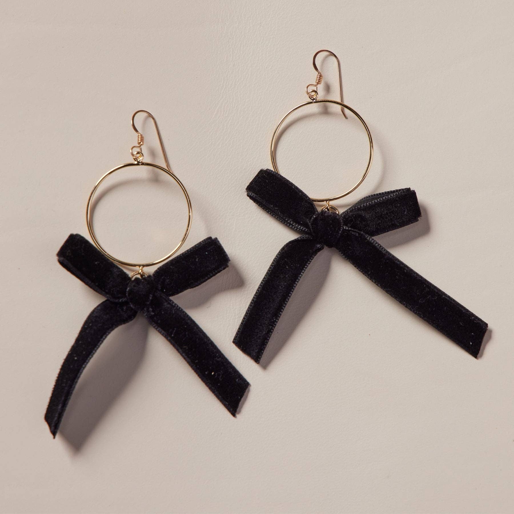 The Claras are a bow-inspired statement earring, featuring a velvet ribbon attached to a gold hoop for an elegant lightweight finishing touch.