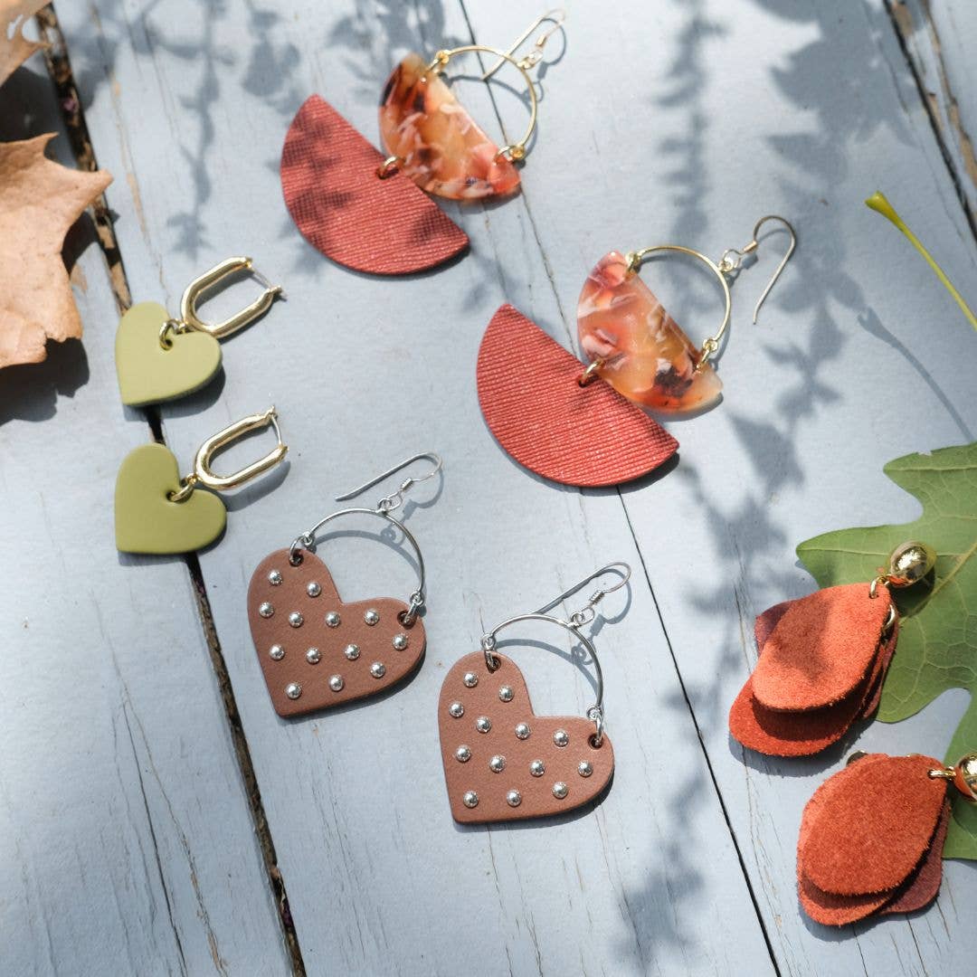 Make a subtle statement with the Cactus Quinn, featuring a lightweight leather heart on a huggie earring.