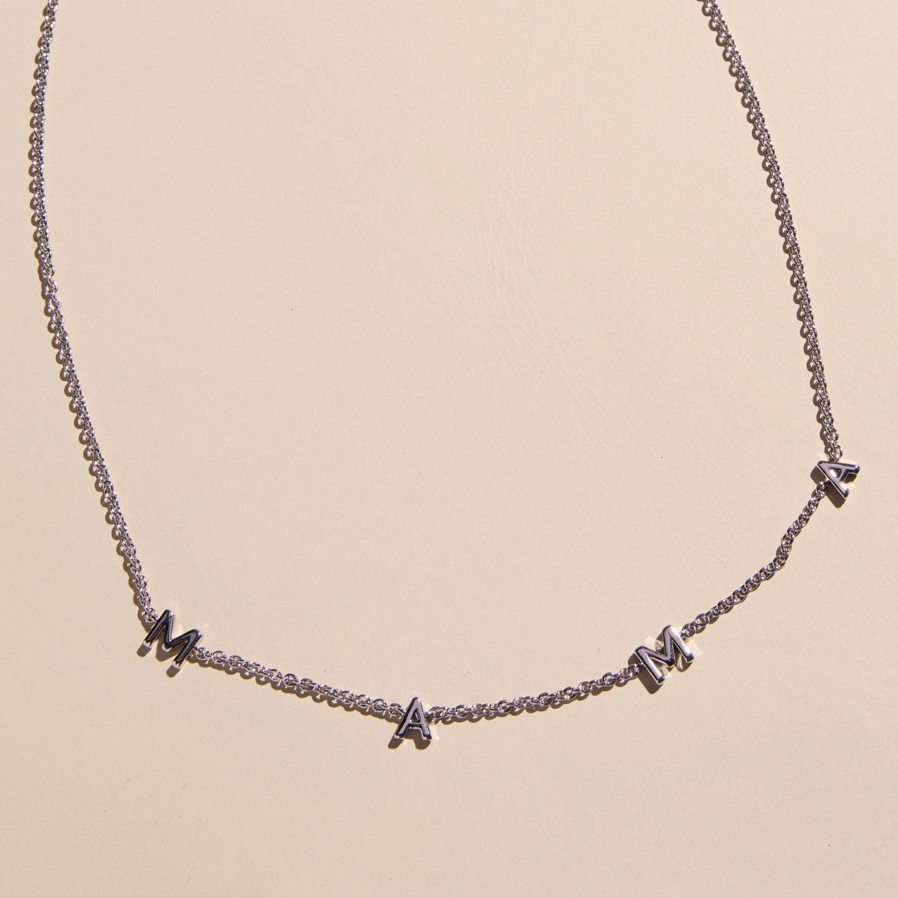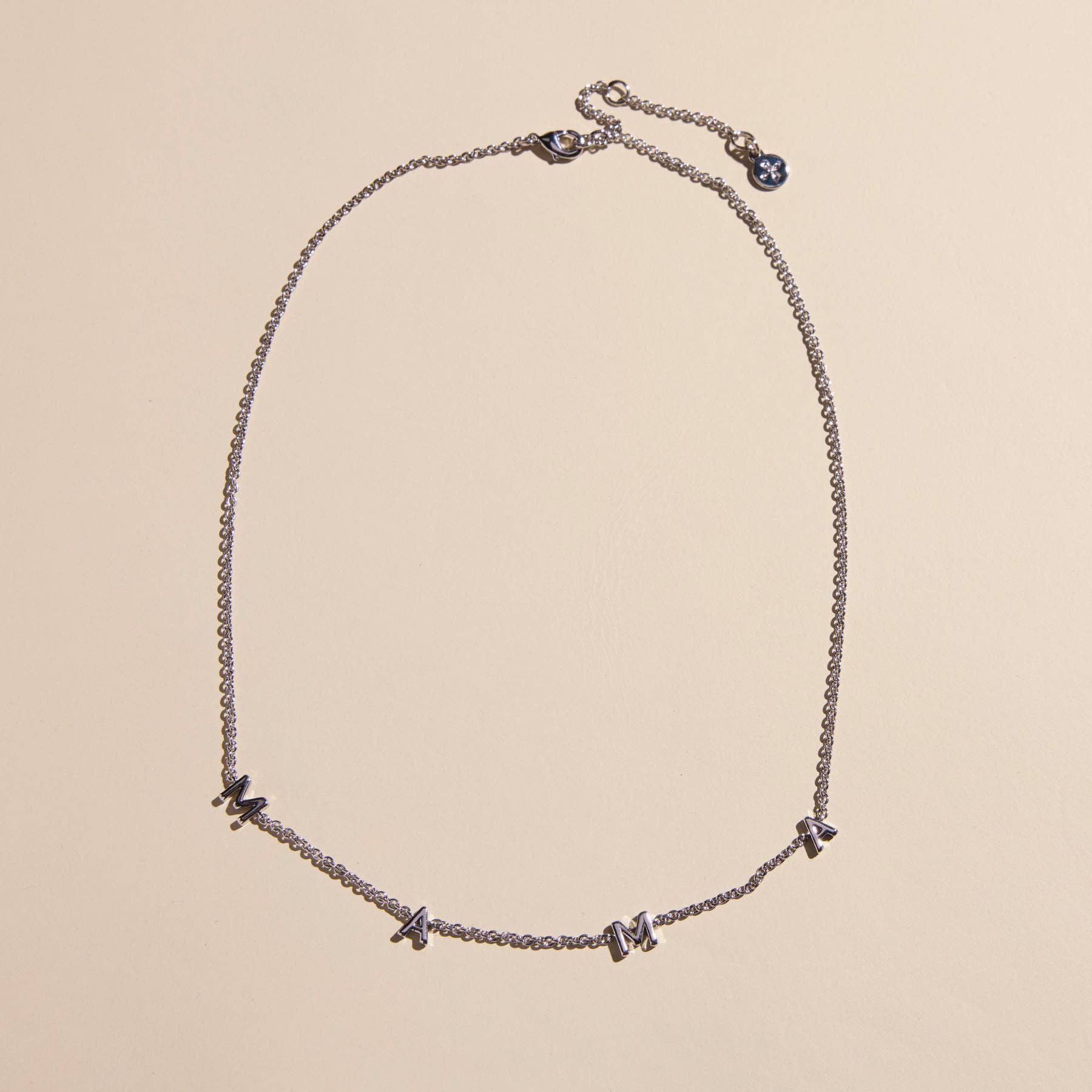 Give a sentimental gift to a special mama in your life. This simple initial chain necklace is dainty but meaningful. Plated in rhodium, it's perfect for any mother's daily wear.