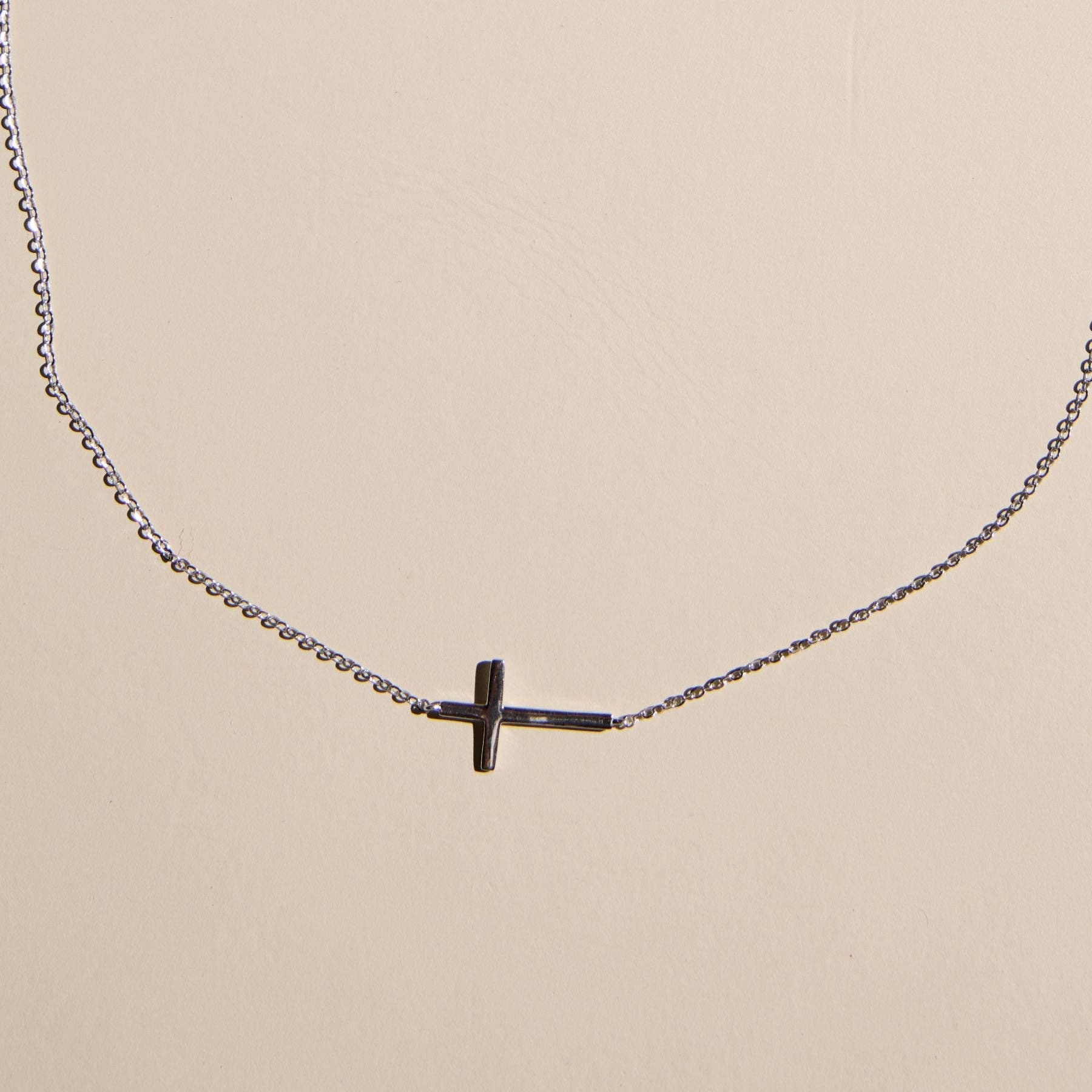 Silver Sideways Cross Necklace: Silver